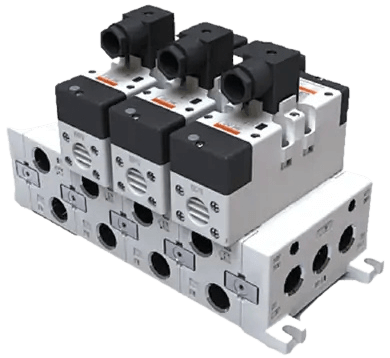 Regulates fluid direction in hydraulic and pneumatic systems.